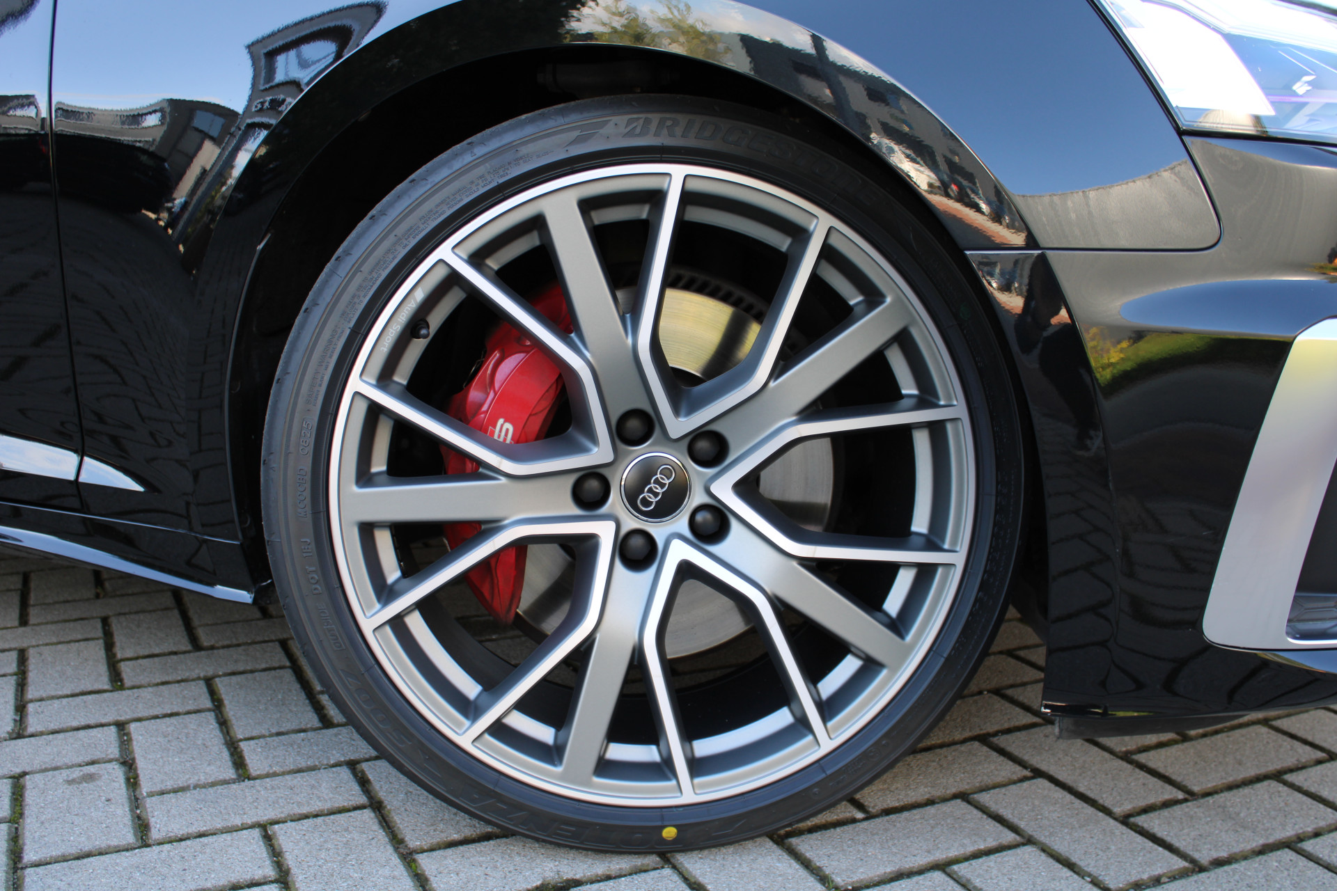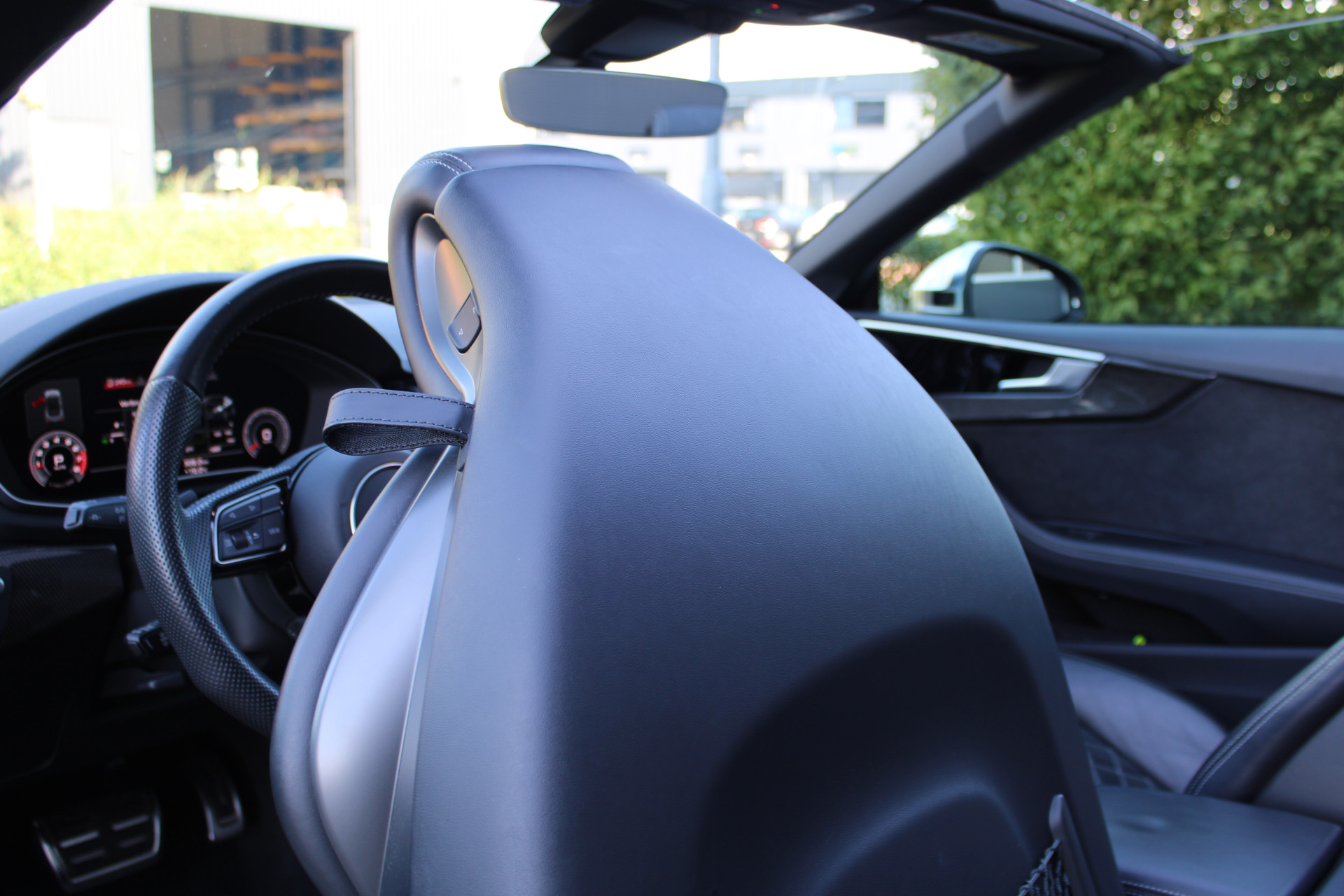 Opberg- en bagageruimtepakket, trekhaakvoorbereiding, parkeerhulppakket, Bluetooth handsfreesysteem met spraakherkenning (Audi Phone Box), rood gelakte remklauwen, antidiefstalvoorziening voor wielen (velgsloten), rijassistentiesysteem: rijstrookassistent (actieve rijstrookassistent), rijassistentiesysteem: verkeersbordherkenning, achterbanksysteem met opbergvak (2 zitplaatsen), head-updisplay, interieur: sierlijsten Carbon Atlas, interieur: sierlijsten Carbon twill, interieur: kunstlederen interieurelementen, Isofix-bevestigingen voor kinderzitje op de voorpassagiersstoel, omgevingscamerasysteem (Top View), digitaal instrumentenpaneel (virtual cockpit plus), luxe automatische klimaatregeling met 3 zones, zitcomfortpakket, spiegelcomfortpakket, contour-/sfeerverlichtingspakket (plus), multifunctioneel stuurwiel (sport/leder - 3-spaaks, onderzijde afgevlakt), lichtmetalen velgen 9x20 (5-V-spaaks, sterdesign, titaniumlook mat, hoogglans), matrix-ledkoplampen met laserlicht, metallic lak, navigatiepakket, S-sportstoelen voorin, stoel bekleding/bekleding: Fijn Nappa-leder met reliëflogo in de rugleuningen van de voorstoelen, Bang & Olufsen-geluidssysteem, S-line sportonderstel met demperregeling, sportdifferentieel
